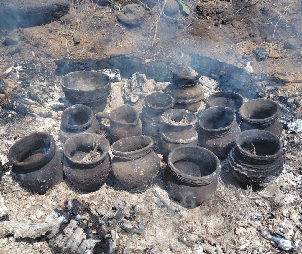 高さ8センチ程のミニ土器を地元の粘土で作ります。作品は数日間乾燥させ、1~2か月後に昔からの焼き方「野焼き」で焼成してから郵送させていただきます。